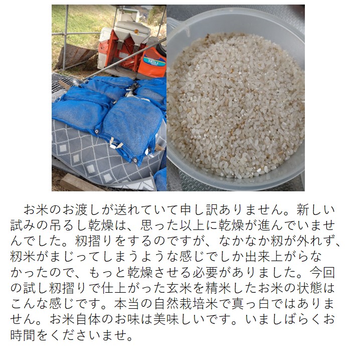 お知らせ2025年12月19日 23:48 お米の発送にいましばらくお時間をください。