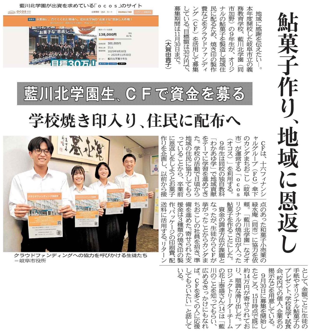 9年生からのお知らせ2025年10月21日 09:59 岐阜新聞に掲載されました!