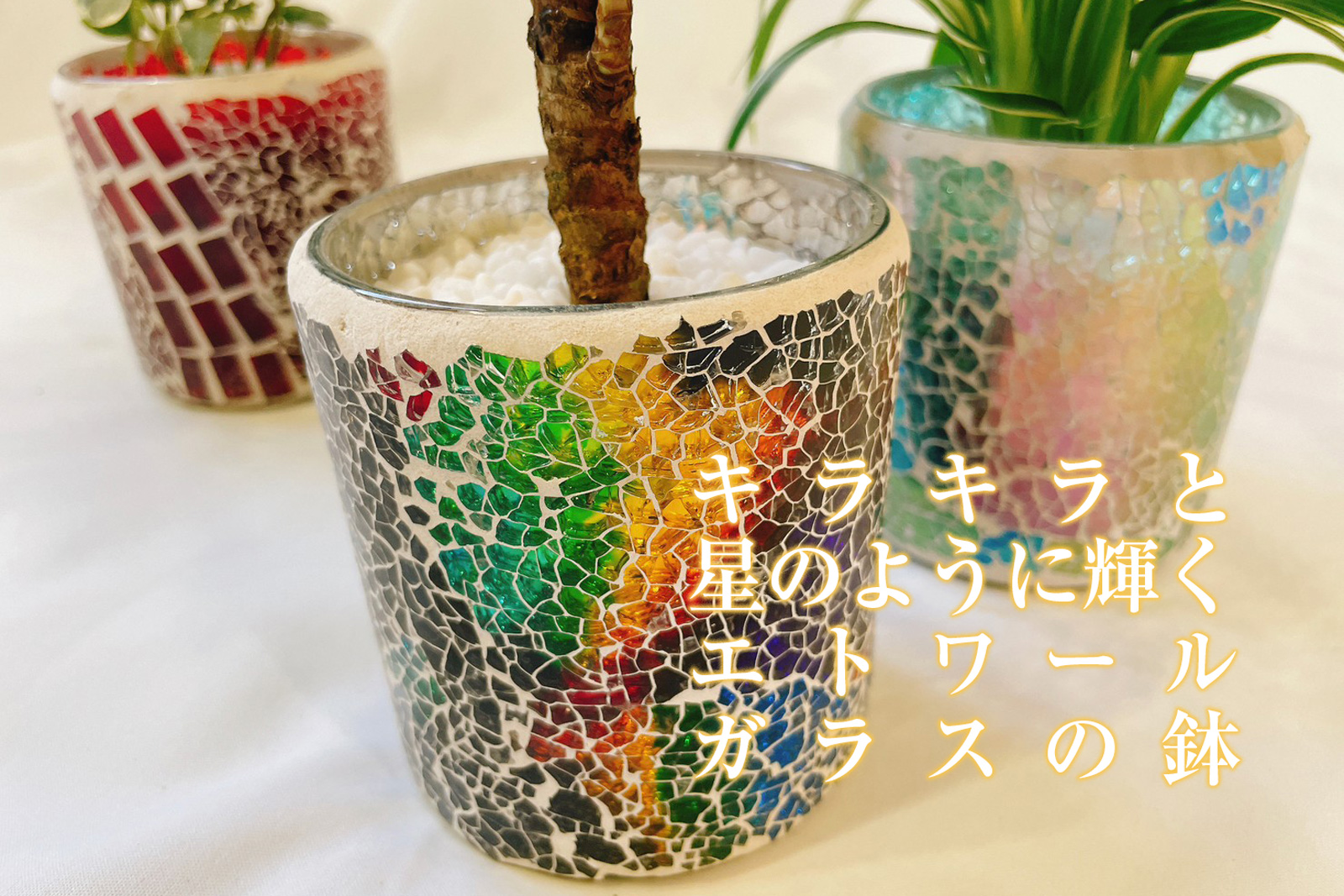 キラキラと星のように輝くガラスは、光の当たり具合によって色味を変え、とても美しいです。