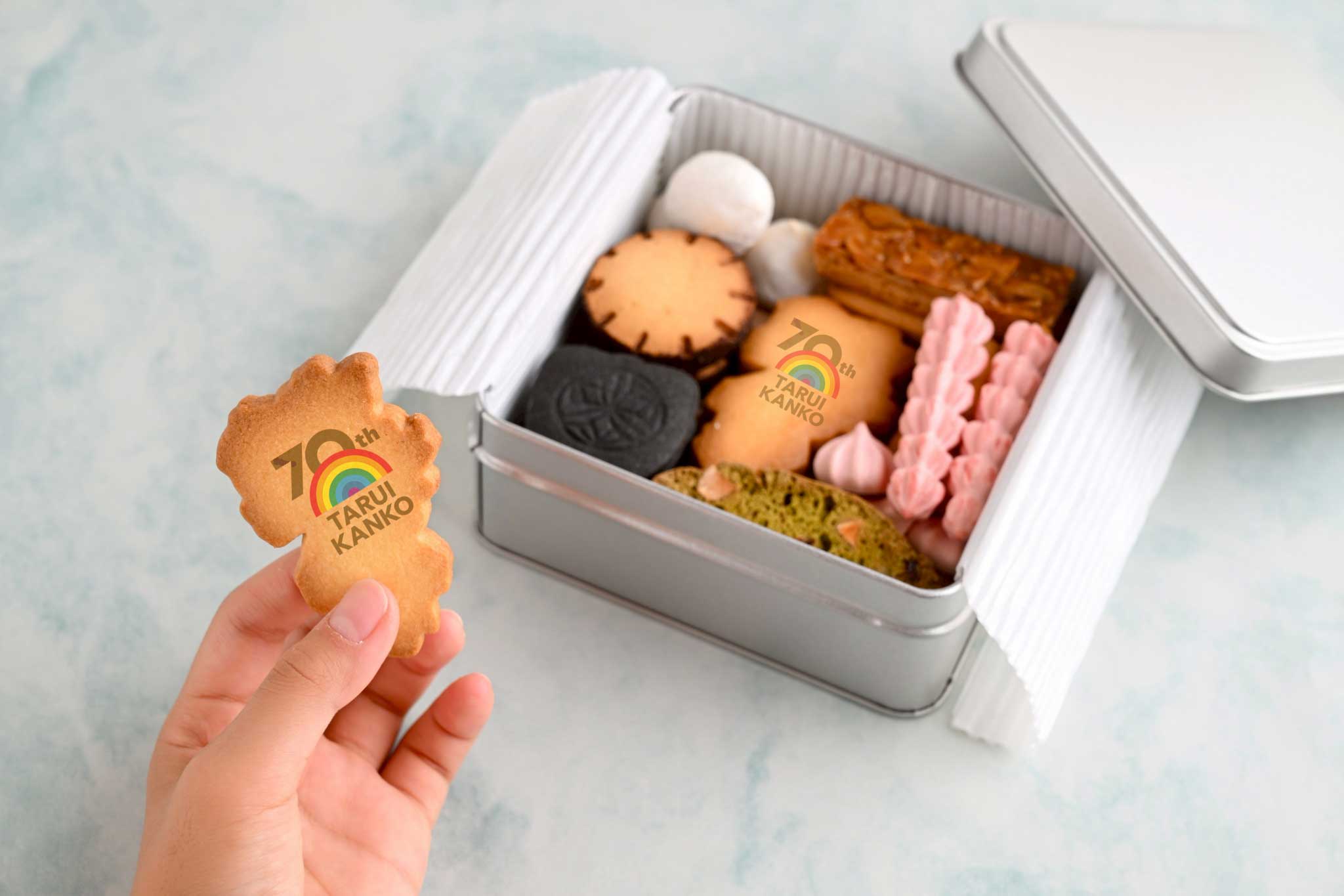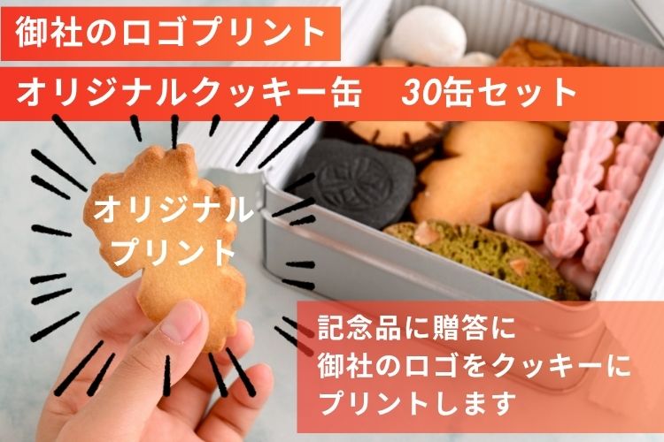 御社のロゴをクッキーにプリントします。垂井クッキー缶セット30缶